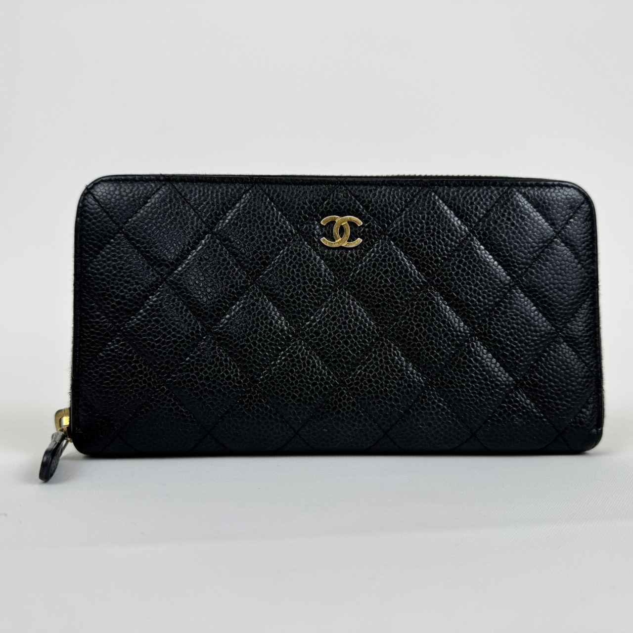 CHANEL Long Wallet Caviar Matelasse Zippy Black Matt caviar skin Rank:AB