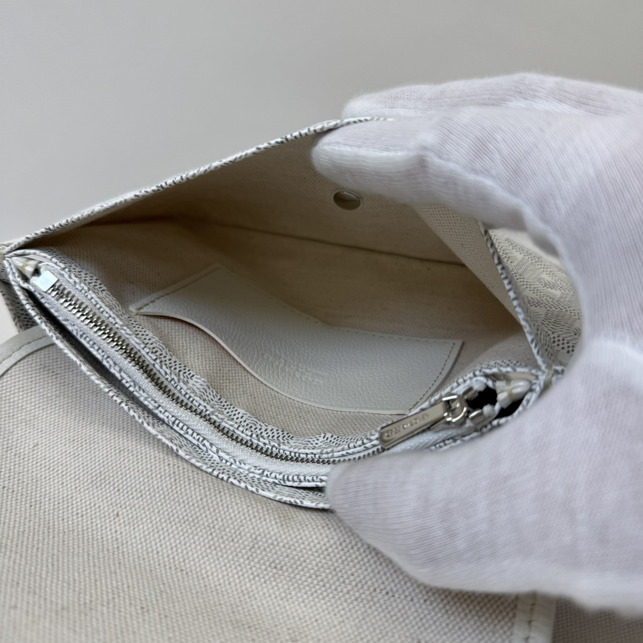 GOYARD Shoulder Bag Goyardine Canvas Plumet Pocket Wallet WHITE Rank:AB